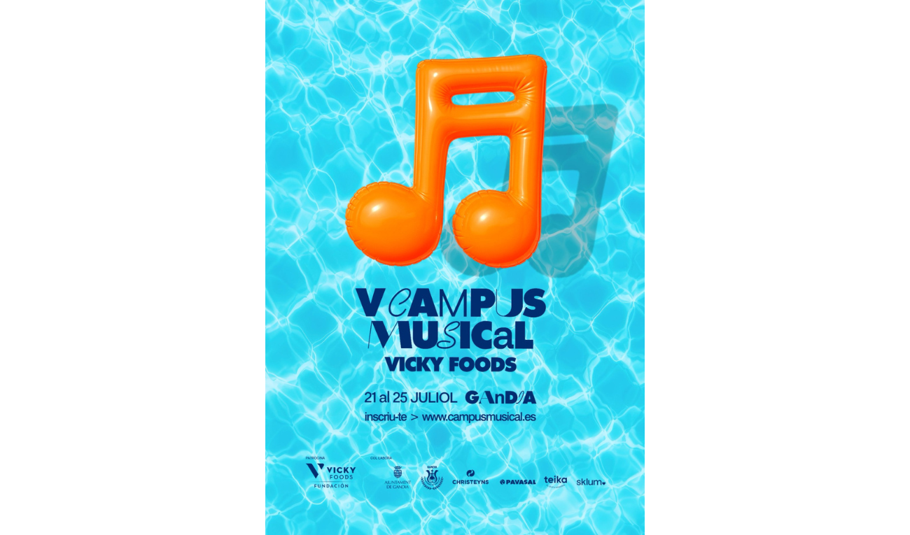 Del 21 al 25 de julio, Gandia acogerá el V Campus Musical Vicky Foods, una semana dedicada a la música, la formación y la convivencia entre jóvenes músicos. El campus ofrece clases, ensayos, actividades culturales y conciertos, con tres modalidades de participación.